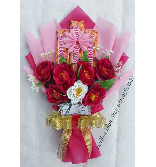 Buket Bouquet Bucket Bunga Dan Snack Coklat Silverqueen Cantik Romantis Shopee Indonesia