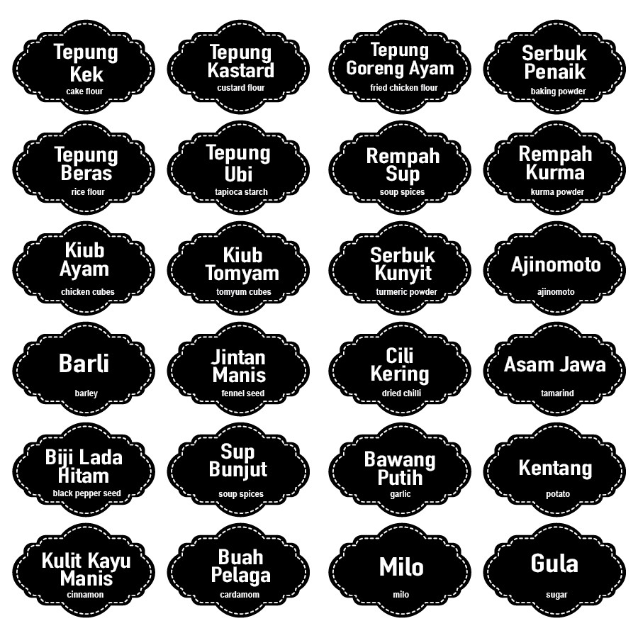Tujuannya untuk melabel rempah ratus atau barang barang yang ada dalam rumah untuk nampak lebih kemas dan semestinya cantik bila dah ada label sticker tu. All our custom stickers are printed on quality sticker paper stock featuring strong adhesion. Caranya mudah jer mula mula klik link kat bawah gambar label ni. Gula kopi ajinomoto susu milo cukup rasa horlicks nescafe garam teh cili kering garam halus gula merah gula melaka garam kasar serbuk kunyit serbuk kurma serbuk ikan bilis serbuk kayu manis serbuk jintan manis serbuk jintan putih serbuk ketumbar serbuk lada hitam beras putih beras basm.