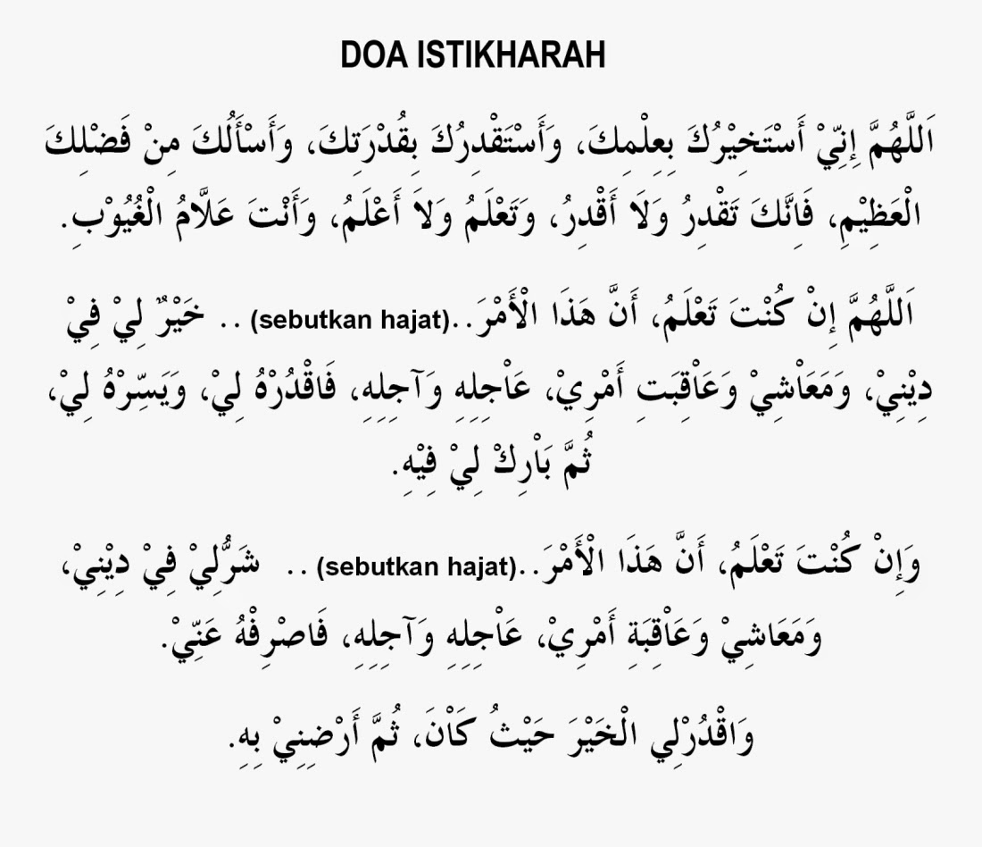 Rakaat ke dua dibacakan al ikhlas 1 kali. Bertapa pentingnya solat istikharah ini agar kita diberi ketetapan yang paling bagus dari allah. Shalat istikharah hidup ini adalah sebuah pilihan. Membaca doa solat sunat istikharah ya allah aku memohon diberi petunjuk doa solat istikharah bahasa arab.