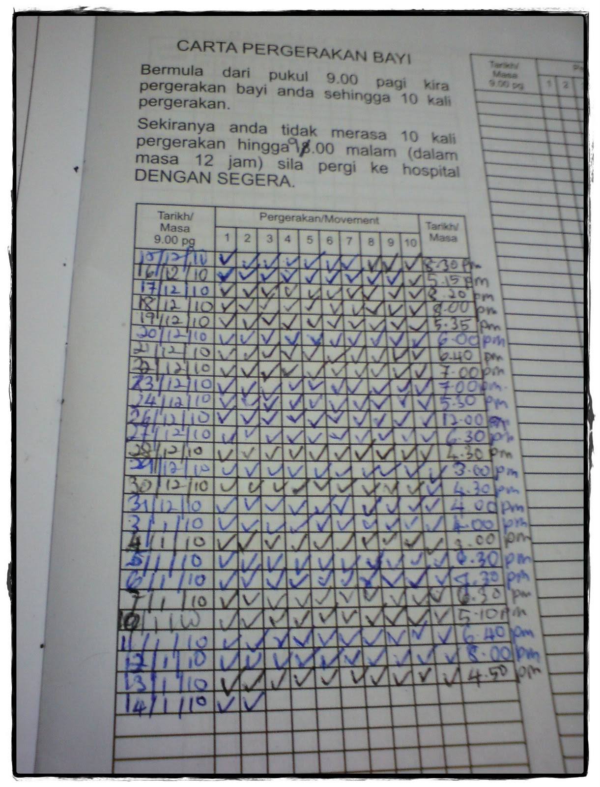 Fetal kick chart fkc a k a fetal movement chart fmc carta gerak anak. Atau mungkin kematian bayi dalam kandungan adalah lebih menyedihkan. Semua pergerakan bayi akan dikira sebagai satu gerakan apabila bayi bergerak. Jika ini adalah kehamilan anda yang pertama mungkin mengambil masa bagi anda untuk mengenalpasti bahawa sensasi seolah olah ketukan lembut dari dalam perut itu adalah sebenarnya pergerakan bayi anda.