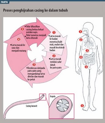 Oleh yang demikian kita boleh terdedah kepada jangkitan cacing melalui pelbagai cara. Jangkitan cacing adalah jangkitan parasit yang boleh hidup dalam darah usus atau organ tubuh. Kebanyakan ubat boleh diambil sebelum atau selepas makan. Ini adalah kerana makanan tidak mempengaruhi penyerapannya dan tiada kesan iritasi pada perut.